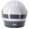 色々な場面で使い勝手の良い、レトロテイストのフルフェイスヘルメットです。 余分な装飾や突起の無い、クリーンな飽きの来ない外観。 フリップ式バイザー付きですので、どのような環境でも手軽に使えます。 カラーはホワイトのベースに、グレーのストライプの落ち着いた組み合わせ。 縁取りはブラック。 帽体は軽量・頑丈なグラスファイバー製。 EPS(発泡スチロール)ライナー付。 バイザーは丈夫なポリカーボネイト製。傷防止加工と、曇り止め加工も施されています。 内装は肌触りの良いフリースライナーと、レトロなパンチングレザーの組み合わせ。 ライナーは脱着式で洗濯可能。 チンストラップはダブルDリング式。 ECE-R22.05安全規格適合品。 ※日本では装飾品となります。 ※EUサイズのため、日本サイズより1-2サイズ以上大きめをお選びください。