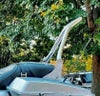 スーサイドチョッパーズ(Siouxicide Choppers)のデタッチャブルシーシーバーです。 高さは22インチ(約56cm)。 エクスカリバーをモチーフにした先端の尖った過激なスタイルですが、後ろに15度の傾斜がついており、ライダーとパッセンジャーの間に余裕のある乗車姿勢を取れます。 更に先端部分の4インチ(約10cm)は30度の傾斜が付いており、見た目のインパクトと、パッセンジャーの安全性にも配慮されたデザインです。 純正のドッキングポイントに装着出来ます。 パイプ径は1.25インチ。 クローム。 ※純正ツアーパックとの併用不可。