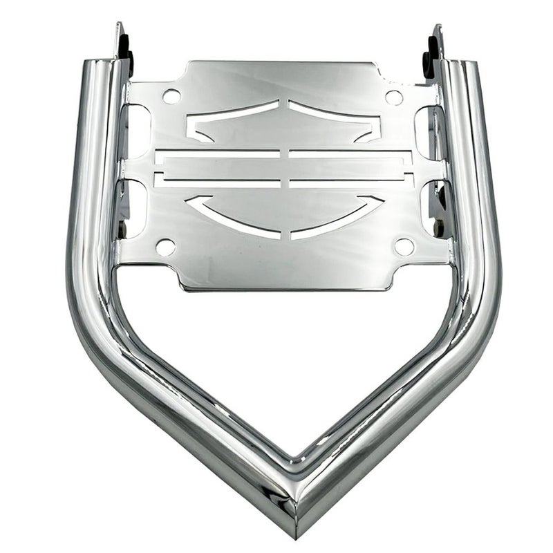 アイオワ州スーシティ(Sioux City)のカスタムショップ、スーサイドチョッパーズ(Siouxicide Choppers)のデタッチャブルラゲッジラックです。 ハーレーダビッドソンのブランドロゴ、バー&シールドデザインの先端が尖ったインパクトのあるデザインです。 純正のドッキングポイントに装着出来ます。 ※ツアーパックとの併用不可。 ※上ナンバー(テールライト上部にナンバーのあるタイプ)の車両不可。