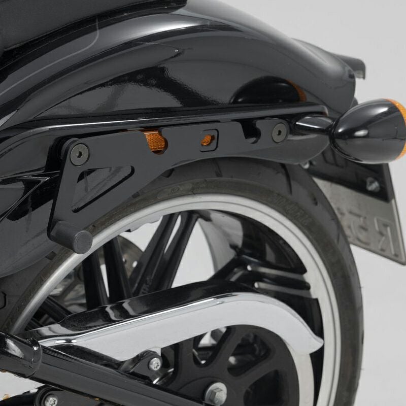 ハーレー M8ソフテイル ファットボーイ、ブレイクアウト用 SLHシステム・サイドキャリアです。 SW-MOTECH(SWモーテック)のLH1サドルバッグ(BC-682-11100)を装着するためのサイドプレートです。 フェンダーストラットボルトでとも締めします。 別売のドッキングハードウェア・アダプターキット(18-682-15000)を使用すれば、純正ホールドファスト・デタッチャブルキャリアやシーシーバーを併用できます。 取付けに必要なスペーサーおよびハードウェアが付属します。