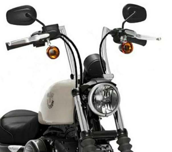 XL スポーツスター、ダイナ、ソフテイル 他、ケーブルスロットル車用 クラシックテイストのミニエイプバーです。 頑丈なスチール製。 ナロー幅のタイトなルックスです。 エンドライズは9インチ(約23cm) グリップ部は握り易い角度で、手首が疲れません。 クロームメッキ仕上げ。 配線中通し用の穴が開いています。 ケーブルスロットル車用 ※購入前に、取り付け車両のトップクランプ幅に干渉しないかご確認下さい。