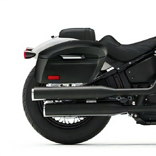 FXBB、FXBBS、FXST用のラージサイズ・ハードサドルバッグです。 フェンダーに沿う様なデザインは車両との一体感も高く、とてもスタイリッシュでありながら実用性の高いバッグとなります。 - リッドは外側に開くので開口部は広く、積載量も両側あわせて2624ci(約43L)と大容量になっております。 - またがったままでも荷物の出し入れが出来るので便利です。 - バッグ本体は対候性グラスファイバーとなっており、防錆の丁番を使用しておりますので強度面でも折り紙つきです。 - リッドにはキーロックが付いておりますので、バイクを離れる際の防犯面も安心です。 - ブラケットおよび取り付けに必要なハードウェアが付属します。 ※取付けは専用ブラケットを車体にボルトオンし、バッグをボルト止めします。 ※バッグ裏面にボルト用穴開け加工が必要です。 ※リアターンシグナルは移設が必要です。 左右ペア