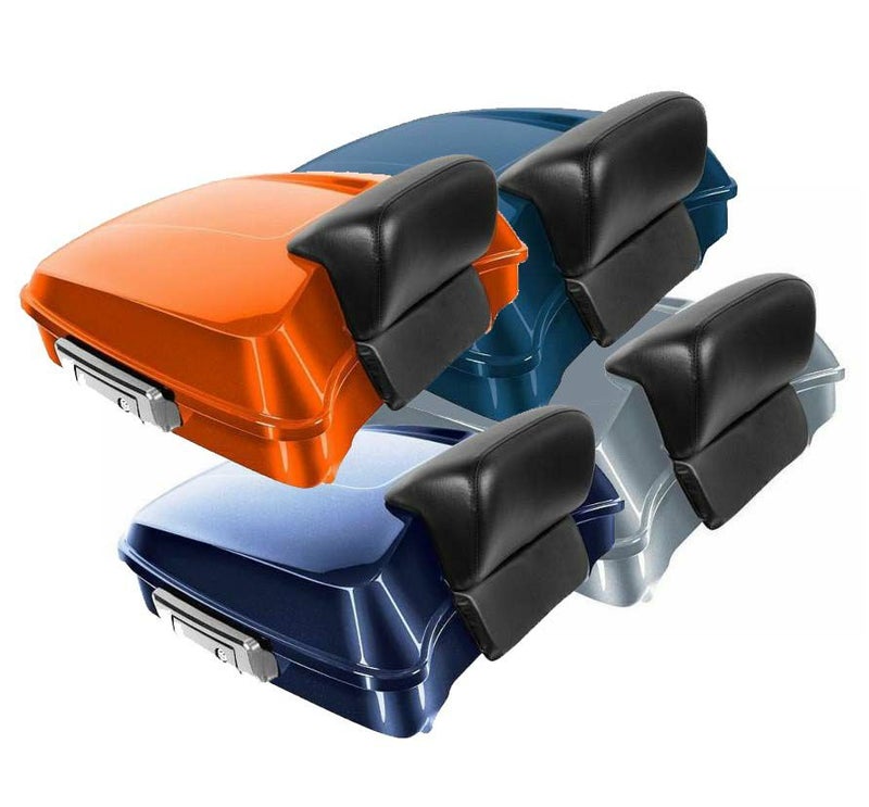 純正カラー仕上げのチョップツアーパック。 カラー選択にご希望のカラーが無い場合は、お問い合わせください。 ハーレー純正のチョップ・ツアーパック(2014以降のデザイン)と同デザイン、同容量のツアーパックです。 キングツアーパックより積載量は少なくなりますが、スタイリッシュで重心も高くなりません。 ストリートグライドに良く似合うデザインです。 小型のチョップバックレスト付です。 ラッチとヒンジがクロームの仕様です。 ※USメーカーでの塗装仕上げの性質上、多少の凹凸や気泡、小傷等はどうしても付いてしまいますので、それらはクレーム対象外となります。完璧な仕上げの塗装は望めませんので、どうぞご了承ください。