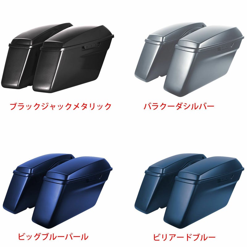 純正カラー仕上げのサドルバッグ。 カラー選択にご希望のカラーが無い場合は、お問い合わせください。 標準装着のサドルバッグと交換装着可能です。 ラッチ、ヒンジ等のハードウェア用の穴あけ加工済みです。 ハードウェアは標準装着品を流用出来ます。 別売のサドルバッグラッチ、ロックキット(HW131372、HW131374)等も使用可能です。 リッドが付属します。 ラッチ、ヒンジ他ハードウェアは付属しません。