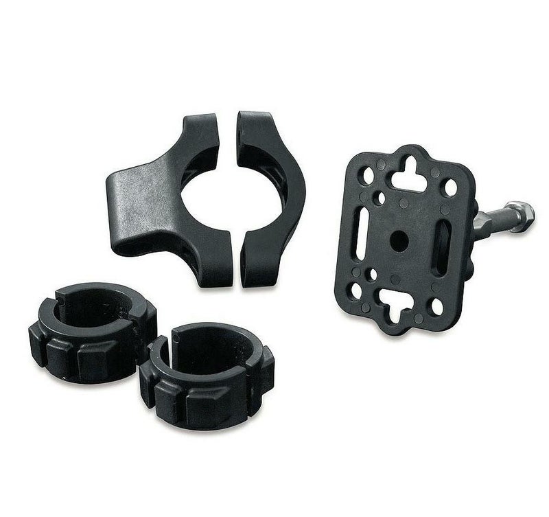 ハンドルバーにクランプして装着。 TECH-CONNECT 専用デバイスホルダーと組み合わせて、iphone やナビなどをマウントできます。 マウントプレート部は見やすい角度に簡単に調節ができます。 この商品はハンドルバー用マウントのみです。ホルダーは別途必要になります。1693や1694などのホルダーを組み合わせて使用します。 1インチ、7/8インチ、1.25インチのハンドルバーに適合します。 ハーレーの大部分は1インチ(25.4mm)ハンドルです。