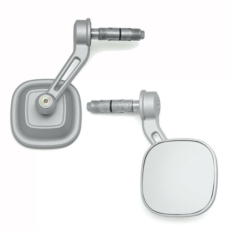 Dillingerシリーズ、バーエンドミラーです アルミニウム製です。 ピボットボールとソケットにより、スムーズな調整と確実な保持力があります。 ミラーヘッド幅:約101.5mm×約101.5mm 凸型ガラスで広い視認性を確保します。 ほとんどの7/8 “または1 “バーと互換性があります。 オープンバーエンドの2~3/4″の深さ×5/8″が必要です。 仕上がりは、シルバーとサテンブラックの2種類です。 ※商品は左右共通、単品売りです。 ※スロットルボスなどエンドアクセサリ付きや、ヒートグリップ、エアリザーバーハンドルバー、電子スロットル付きスロットルサイドには使用できません。