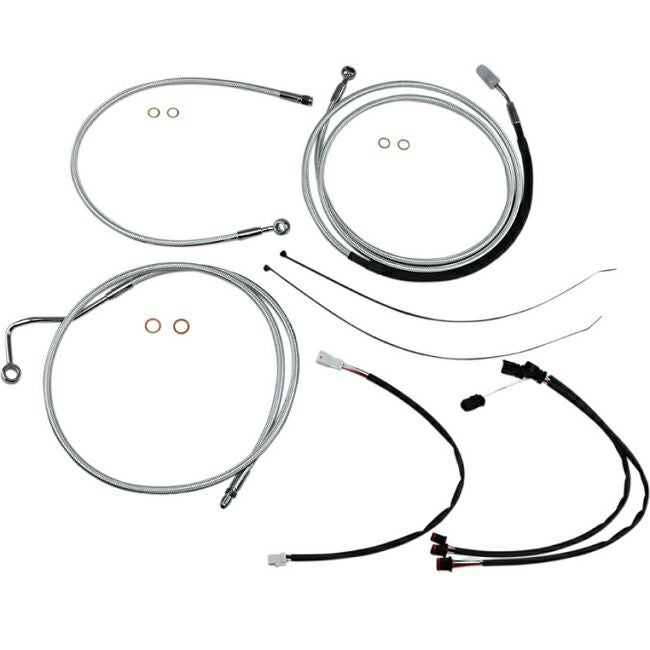 ハイクオリティなケーブルで定評のあるMagnum(マグナム)の、ハーレー、ロードグライド・モデル(適合参照)向けケーブルキットです。 - ホースやフィッティング類は純正品を上回る品質を誇ります。 フィッティングは標準装着部品と同じ角度に設計されていますので、取り付け角度が合わないといったトラブルがありません。 - ブレーキホースとクラッチホース、フィッティングスターリングクロマイトとなります。 - 配線類は必要なものが付属しています。 ※15~17インチエイプハンドル用。(ノーマルライザー装着時前提) ※写真は参考写真 ※ロアのブレーキラインは標準装備の物を流用します。 DOTスペック適合品 MADE IN USA