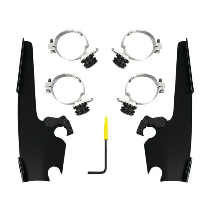 FAT/SLIM//Drop-Topシリーズの装着に必要なマウントキットです。 ウインドシールドはデタッチャブルで取り外し、装着が出来るようになります。 ※ハンドルにウインカーが付いている車両は移設が必要になる場合があります。