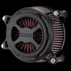 ハーレー M8 ツーリング、ソフテイル、トライク用 ハイフローエアクリーナーキットです。 大容量ハイフローエアフィルターと、特許取得のハイフローベンチュリ、大口径バックプレートの組み合わせにより、エア吸入量が大幅に増大します。 フェースプレートはビレットアルミニウム製。アルファベットのX(エックス)デザイン。CNCマシンによる精緻な削り出し加工品です。 クールなリンクルブラック。 フェースプレートのボルトはハイクオリティな12ポイントフランジヘッドです。 エアフィルターは前面からも吸入するため大量のエアを取り込めます。 汚れたら洗浄して繰り返し使用出来ます。 ※2021以降ツーリングSモデル、2017以降CVOおよび2018以降ソフテイルSモデルへ装着の場合、インダクションモジュールブラケット(16400049、9379)が別途必要