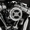 ハーレー ツインカム ツーリング、ソフテイル、トライクの電子制御スロットル搭載車用 ハイフローエアクリーナーキットです。 大容量ハイフローエアフィルターと、特許取得のハイフローベンチュリ、大口径バックプレートの組み合わせにより、エア吸入量が大幅に増大します。 カバープレートはビレットアルミニウム製。 CNCマシンによる削り出し加工と、星条旗がエッチングされた美しいデザインです。 カラーはゴージャスなクローム。 カバープレートボルトは美しく丈夫なARP社製ボルトです。 エアフィルターは前面からも吸入するため大量のエアを取り込めます。 汚れたら洗浄して繰り返し使用出来ます。