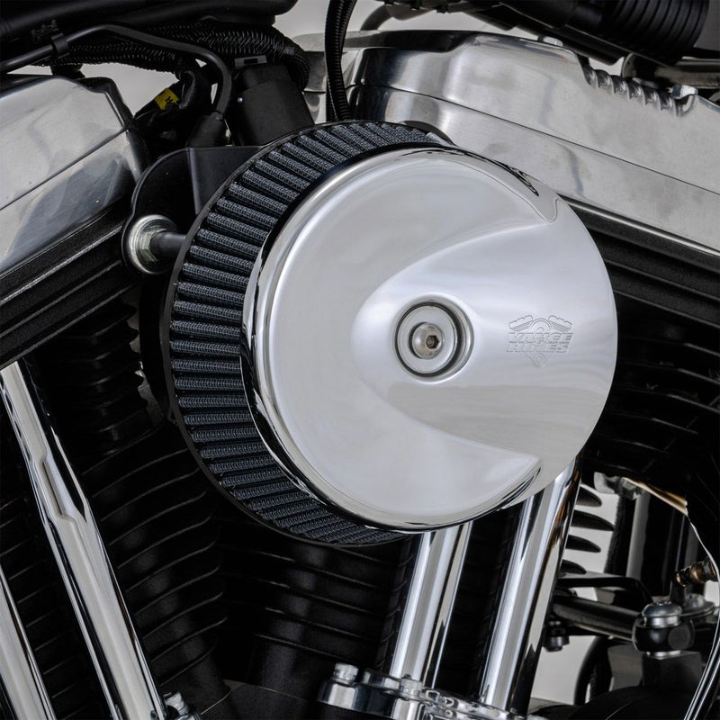 ハーレー M8 ツーリング、ソフテイル、トライク用 ハイフローエアクリーナーキットです。 ハイフローエアフィルターと、大口径バックプレートの組み合わせにより、ノーマルエアクリーナーよりもエア吸入量が増大します。 カバープレートはコルベット・スティングレー等アメリカンマッスルカーのボンネットのエアインテークの盛り上がりを模したデザイン。 カラーはゴージャスなクローム。 エアフィルターは汚れたら洗浄して繰り返し使用出来ます。 ※装着にはノーマルのインダクションモジュールブラケット(16400049)を使用します。 2021以降ツーリングSモデル、2017以降CVOおよび2018以降ソフテイルSモデルへ装着の場合、インダクションモジュールブラケット(16400049、9379)が別途必要です。