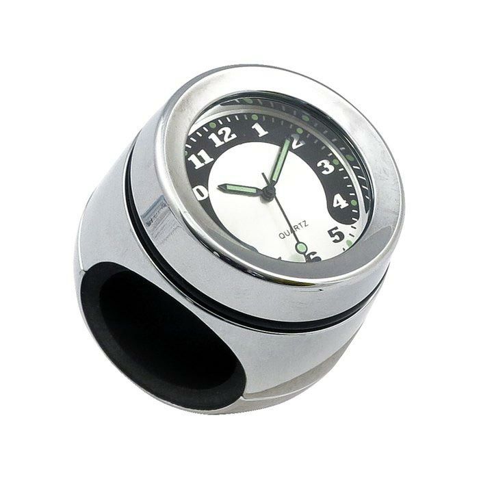 MCS製の1インチ(約25㎜)、1.25インチ(約32)どちらのハンドルバーにもマウントできる、時計です。 ほとんどのハーレーのハンドルは1インチ径です。カスタム・ハンドルには1.25インチの物もあります。 - ムーブメントはクォーツ式ですので高い精度の時計です。 - ツーリング時、ハンドルバーで時間確認を行えるので視線移動が少なく便利です。 レンズ径32㎜