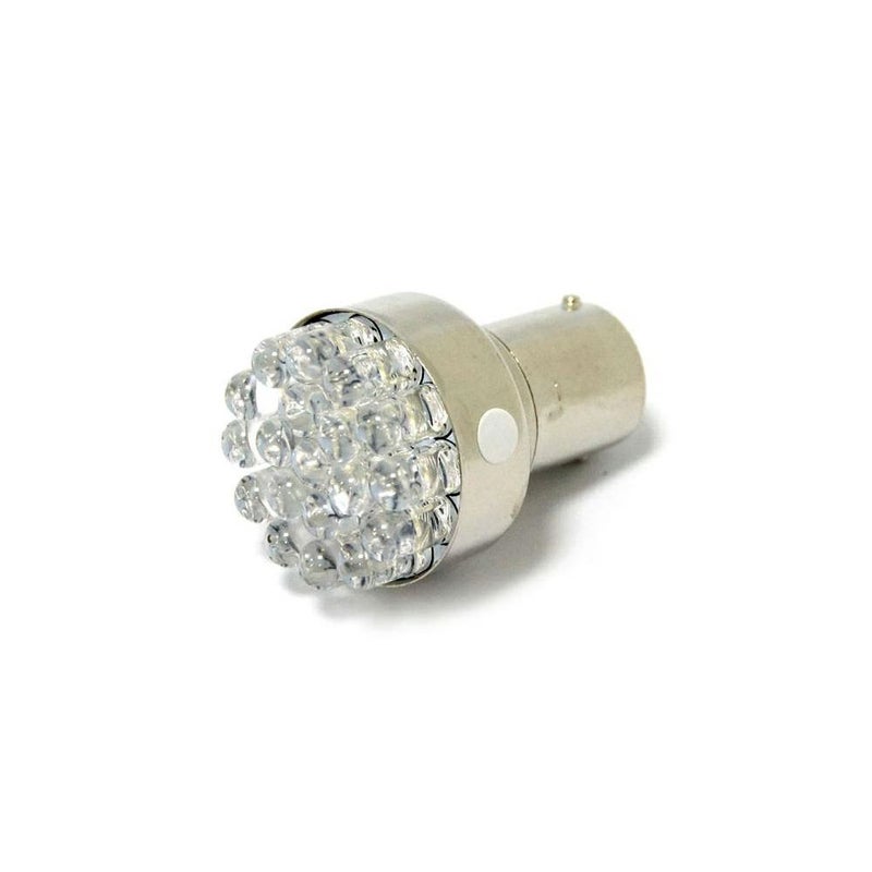 ホワイトに発光するLEDバルブです。 19個のLED付で、大変明るく発光します。 標準的な1156バルブ仕様です。ノーマルの電球と入れ替えて使用出来ます。 シングルファンクション。 色付きレンズと組み合わせてウィンカー用やブレーキライト用として使用出来ます。 単品販売