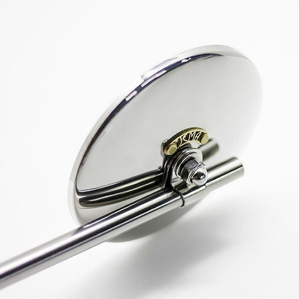 英国製ヴィンテージミラーをモチーフデザインされたミラー。 チョッパー、ボバー、カフェレーサー等のカスタム車両は勿論、旧車との相性も抜群です。 ミラーは凸レンズなので拡大して見えます。 直径10cmあるので、かなり視認性が良いです。 ステンレス、ポリッシュ仕上げ。 左右共用。 単品販売。 JCMA (Japan Custom Motorcycle Association、日本改造単車協会)のブラスタグ付き。 MADE IN JAPAN