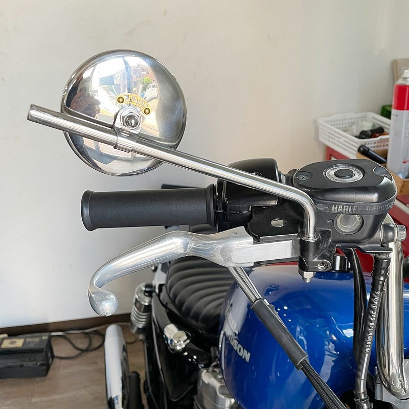 英国製ヴィンテージミラーをモチーフデザインされたミラー。 チョッパー、ボバー、カフェレーサー等のカスタム車両は勿論、旧車との相性も抜群です。 ミラーは凸レンズなので拡大して見えます。 ステンレス、ポリッシュ仕上げ。 左右共用。 単品販売。 JCMA (Japan Custom Motorcycle Association、日本改造単車協会)のブラスタグ付き。 MADE IN JAPAN