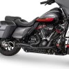 シリンダーから集合部に向かって1.75インチ、1.875インチ、2インチと徐々に径が太くなるエキゾーストパイプと、マフラー部は2.5インチから3インチに2ステップの径をもつバッフル付。合計5ステップで径の太くなるシステムは他に類がなく、これによりパワーとレスポンスが向上します。 ショートマフラーは深みのある音を奏でます。 外向きのエンドキャップがホットロッドスタイル。 エキゾーストパイプ部はフルカバーヒートシールド付。 O2センサーポートおよびプラグ等のマウンティングハードウェア付。 ※2021以降ツーリングへの取り付けには、1081-0009A O2センサーキャンセラー が別途必要です。