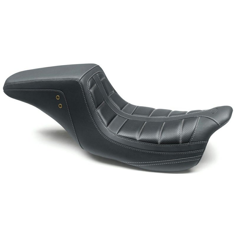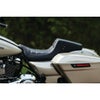 ハーレー ツーリング用 ワンピース・2UPシートです。 ライダーのバックサポートが高く、テール部分が角ばった、スクエアバックデザイン。 ライダーのポジションはほぼノーマルシートと同等ですが、よりアグレッシブなライディングでライダーをしっかりとホールドしてくれます。 表皮は合成皮革。本革のような風合いと耐久性を兼ね備えています。 スムースとパンチングのパネルを切替えて使用し、タックアンドロールステッチと併せてカスタム感溢れるルックスです。 サイドのブラスグロメットもデザインアクセントです。 ステッチはガンメタル。シックなグレーでさりげなくカスタム感を演出します。 取付けに必要なハードウェアが付属します。 ※車両装着写真は別カラーのものです。(参考写真)