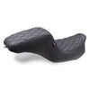 2008以降 ツーリング用 ツーアップシートです。 <特長> ●すっきりとしたルックスと快適性を併せ持つシートです ●エルゴノミックシェイプの座面がライダーの体重を分散させ、お尻が痛くなるのを防ぎます ●ライダー側座面はノーマルシートよりやや長く、ポジションの自由度が高まります。高いバックサポートがライダーの腰をサポートします ●パッセンジャーシートはタンデム乗車時の安心感と快適性を配慮した四角い形状 ●座面にはクラシカルな雰囲気のダブルダイアモンドステッチ入り
