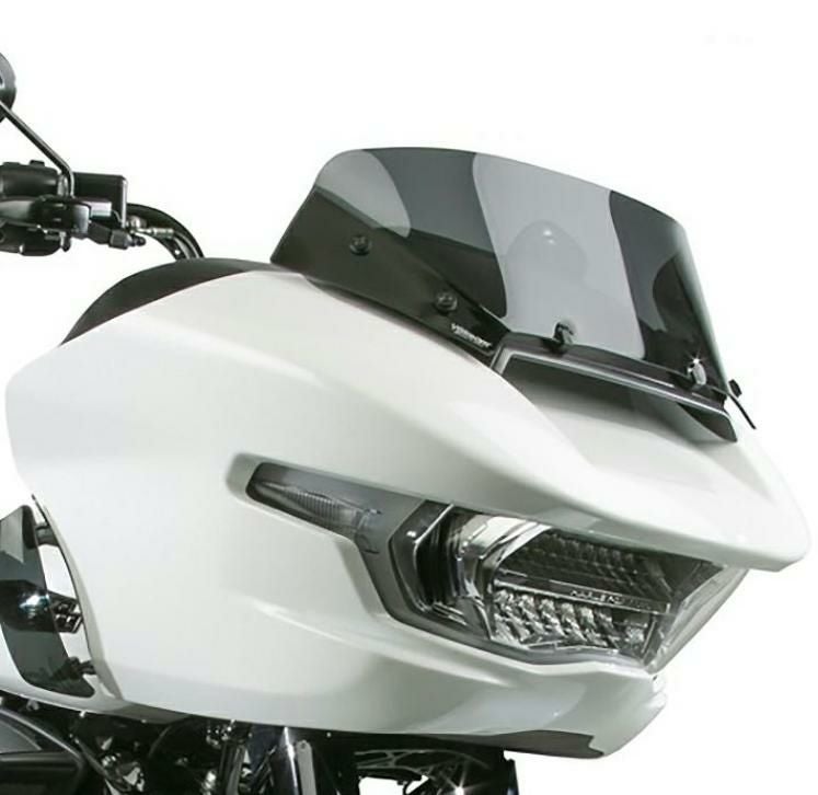 2024以降 ロードグライド、2023以降 CVOロードグライド用 ウィンドシールドです。 <特長> ●厚さ4.5mmのポリカーボネイト製。ハードコート処理が施された、自動車用安全ガラスよりも強く、傷つきにくい仕様です。雨に当たっても水滴を弾き、走行中の視界を邪魔されません ●ナショナルサイクル特許取得のVストリームシェイプ。走行風の巻き込みを抑え、快適なライディングを楽しめます ●視野の歪みの少ない形状と、高さに合わせてライダーからの視野を考慮した色の濃さの設定がなされており、ハーレー用ウィンドシールドの老舗ならではの配慮が詰まったウィンドシールドです
