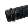 ラバー部分にメーカー名が型押しされています。 握りやすく、滑りにくいグリップです。 同メーカーで揃えると統一感、カスタム感が出てカッコよく目立ちます。 写真2、3枚目(アクセル側)に接着剤が固着しています。 アクセルを回すことにに問題はありませんが、内底の接着剤に厚みがあるので、取付箇所が3mm程m外側になります。