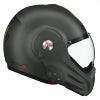 フランスで有名なヘルメットメーカー、ROOF。 独特な形状とシステムでヨーロッパで高い評価を得ているメーカーです。 通常のシステムヘルメットと違い、チンガードが後頭部付近まで可動し、そのままの状態で走行しても違和感のないデザイン。 ジェットヘルメット状態とフルフェイス状態の二つで認証を得ています。 シールドは、チンガードの位置に関係なく開閉が可能。 耐キズ加工と曇り止め加工がされています。 各所に設けられたベンチレーションが内部の蒸れを抑え快適性に優れています。 インナーは取り外して洗う事が可能。 ※クリスタルクリアーバイザーシールド(947765)が標準装備。 EU/CE規格 ※装飾品