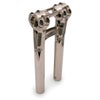 ハーレー用 1.125インチ径 ストレートライザーです。 このライザーは各パーツがモジュラー化されており、組み合わせにより高さ、プルバック/ストレート、トップブリッジワンピース/ツーピースの多くのバリエーション展開されています。 高品質の6061アルミニウム製。CNCマシンによる精緻な仕上がりで、ライザーだけでもスペシャルな雰囲気満載の製品です。 カラーはニッケル。周辺のブラックパーツ、クロームパーツのいずれにもマッチします。 クランプは1.125インチ径。流行りの1.125インチ径モトスタイルハンドルバーを装着出来ます。 トップクランプはワンピースタイプ。左右合計8本のボルトでしっかりとクランプしつつ、スリムな2本ブリッジの質感の高いデザインと仕上がりです。 ブラックのステンレス製クランプボルトが付属します。 ライザーボルトは多くのハーレーで使われる1/2-13サイズを使用。 ※ライザーボルトは付属しません。 ※写真のメーターブラケット(01-13-0006-N)は別売です。