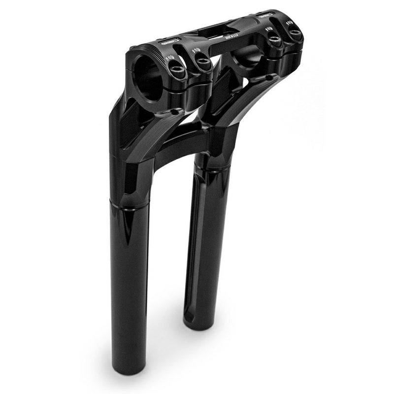 ハーレー用 1.125インチ径 プルバックライザーです。 このライザーは各パーツがモジュラー化されており、組み合わせにより高さ、プルバック/ストレート、トップブリッジワンピース/ツーピースの多くのバリエーション展開されています。 高品質の6061アルミニウム製。CNCマシンにより精緻な仕上がりです。 クランプは1.125インチ径。流行りの1.125インチ径モトスタイルハンドルバーを装着出来ます。 トップクランプはワンピースタイプ。左右合計8本のボルトでしっかりとクランプしつつ、スリムな2本ブリッジの質感の高いデザインと仕上がりです。 ブラックのステンレス製クランプボルトが付属します。 ライザーボルトは多くのハーレーで使われる1/2-13サイズを使用。 ※ライザーボルトは付属しません。