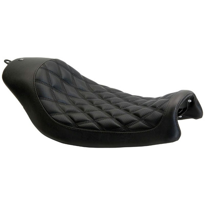 2006~2017 ダイナ用 ソロシートです。 <特長> ●ロープロファイルのスポーティーなソロシート ●座面パネルのパンチング素材に、スポーティーなトリプルダイアモンドステッチがデザインアクセント ●高密度ウレタンフォームにより、快適な座り心地 ●RSD(ローランドサンズデザイン)のロゴバッジ付き ※2006~2017 ファットボブ(FXDF)は別売ブラケット(589644)が必要です。