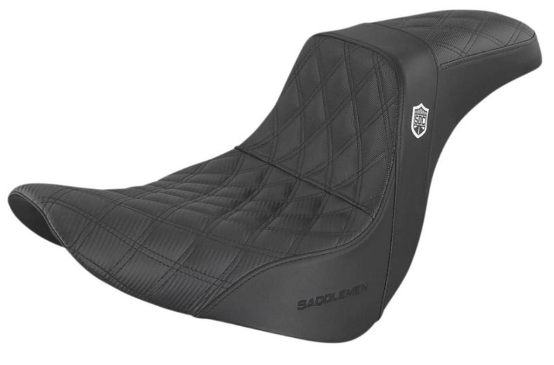 M8ソフテイル ローライダー/S/ST、スポーツグライド用 2UPシートです。 オプションを選ばないすべてブラックの場合は、納期の早い0802-1433があります。 クラブスタイルで人気のSan Diego Customs(サンディエゴカスタムズ)と、品質と快適性でハーレーライダーからの評価の高いSaddlemen(サドルマン)のコラボレーションシート。 両サイドにはSDC(サンディエゴカスタムズ)のロゴエンブレム付。 ※座面ステッチ、トップステッチ、サドルマンロゴ文字ステッチは色を選べます。(プルダウンからお選びください) 高く切り立ったライダーバックサポートが激しいライディング時にも確実にライダーの身体をサポートします。 更に座面には滑りにくいグリッパー素材を使用。 座面ステッチはラティス(格子柄)ステッチ入り。 ライダー座面にはゲル入りで、長時間の乗車も快適です。 ※写真のシートは全てゴールドステッチのオプション参考シートになります。 ※パッセンジャー側にもゲル入りをご希望の方はご注文時にゲルオプションを選べます。(プルダウンからお選びください)