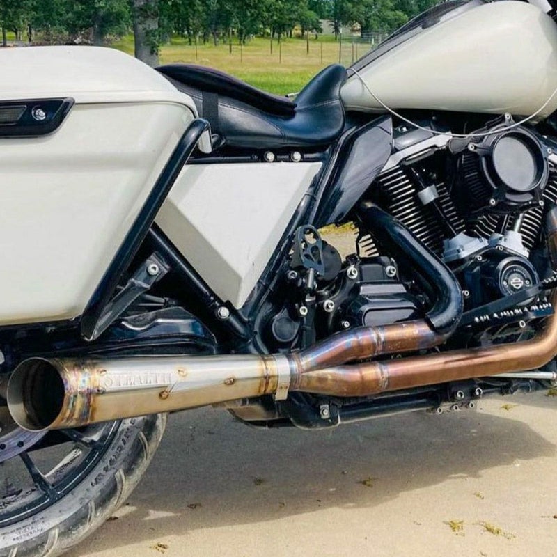 M8ツーリング 2-1フルエキゾーストマフラー ターンアウトタイプ (ステンレス) Stealth Pipes