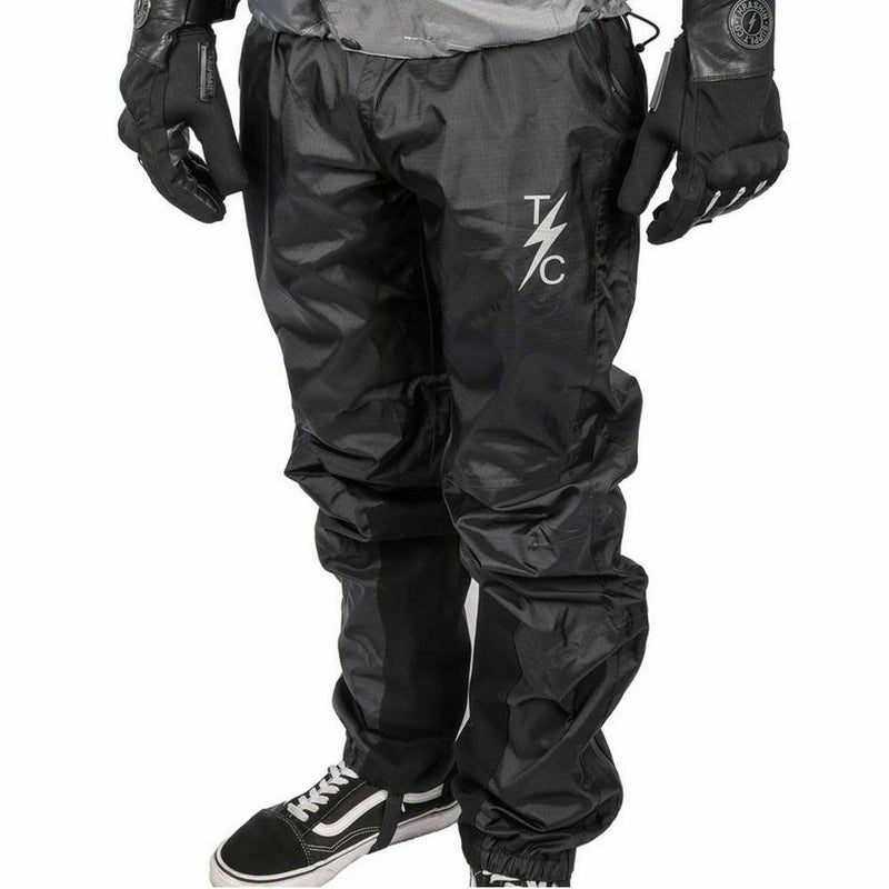 THRASHIN SUPPLY製Mission Equipment 防水レインパンツです。 〈特徴〉 ●Mission Equipment の防水レインパンツは、バイクに乗っているときも乗っていないときも、雨風から身を守るためにデザインされています。 ●耐久性の高いPUコーティングナイロンリップストップ素材。 ●完全にテープ加工された縫い目が防水保護を保証。 ●股下部分の耐熱素材が脚を排気から守ります。 ●ポケットは内側の層に開いてすぐに取り出せます。 ●全体に防水YKKジッパーを採用 。 ●スタッフポーチが付属。
