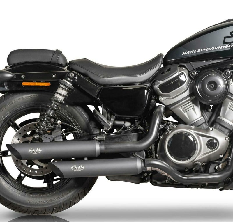 ナイトスター/S用 2-2フルエキゾーストマフラーです。 EURO5規制に適合しつつ、レーシーなサウンドとハイパフォーマンスを両立させています。 マフラーエンドはスラッシュカットスタイル。 上下2本出しマフラーがオフセットされており、いかにもハーレースポーツスターらしいルックスにドレスアップします。 カラーはマットブラック。摂氏900度に耐えるセラミックコート仕上げです。