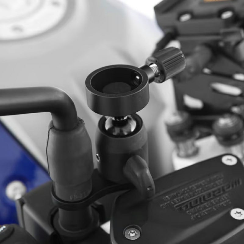 ミラーのハンドルマウント部に取り付け可能な、汎用クランプです。 すっきりとした見た目になります。 パンアメリカ/スペシャル 等に取り付けできます。 Wunderlich(ワンダーリッヒ)のサングラスケース(W45153-102)、スマートホンホルダー(W45155-102)、アクションカメラホルダー(W45155-202)を取り付けるためのベースとなります。 アルミニウム製。 腐食に強いアルマイト処理済みです。