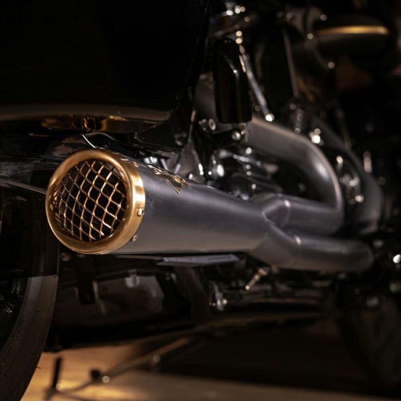 M8 ツーリング用 2-1フルエキゾーストマフラーです。 メガホンタイプのショートマフラーがスポーティーなルックスです。 エキパイとマフラーはステンレススチール製。ブラックの耐熱塗装仕上げ。 ブロンズの金網付きエンドキャップと、ブロンズのZARD(ザード)ロゴプレートがスペシャルな趣の、120THアニバーサリー仕様。 2021以降のO2センサー対応 ※マフラー側O2センサーホールが開いています。2020以前のモデルは使用しないマフラー側O2センサーホールを付属のプラグで塞いでください。 キャタライザー無のレース仕様。 迫力のある排気音を奏でます。