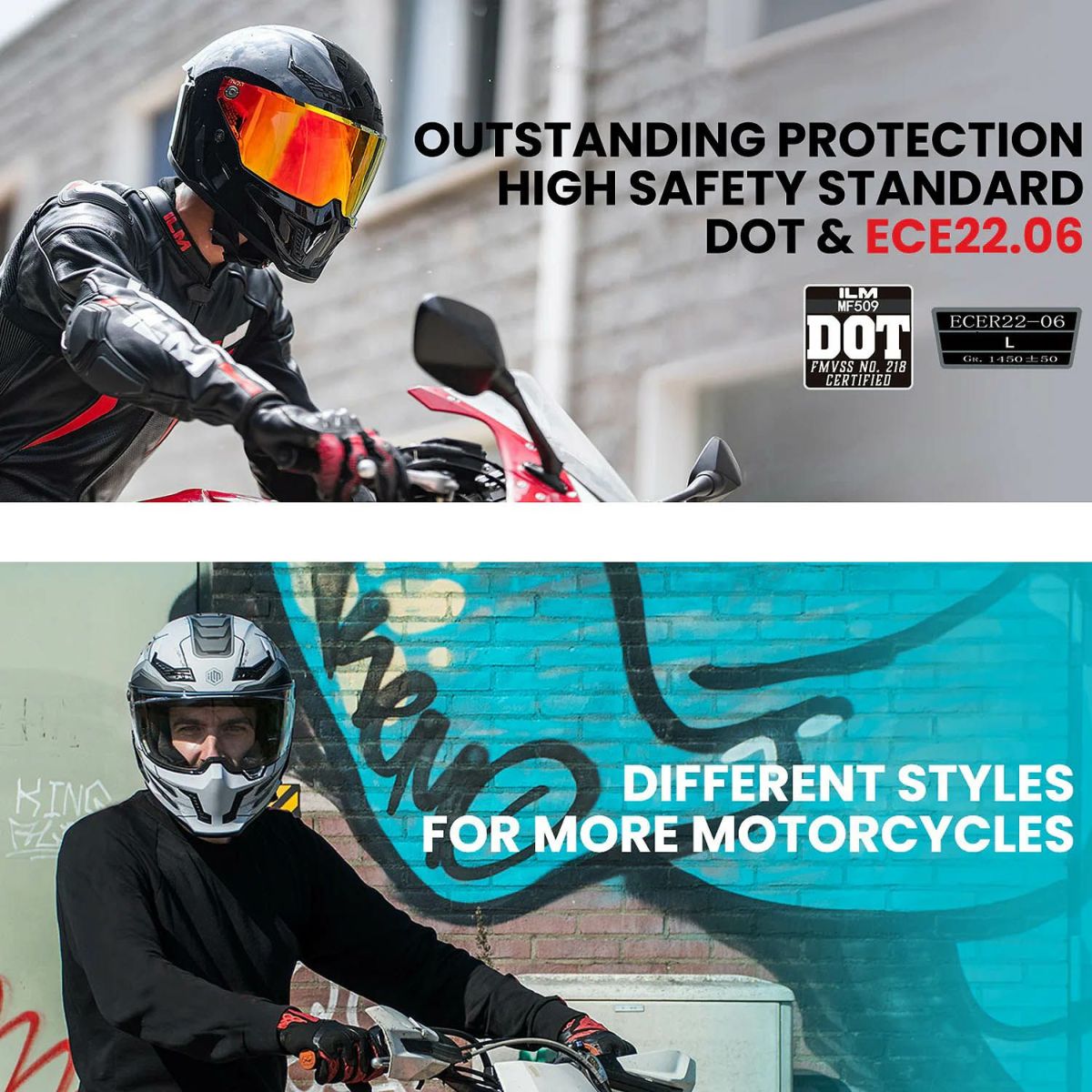 【SALE】ILM MF509 フルフェイス ヘルメット レーシングモデル グロスブラック