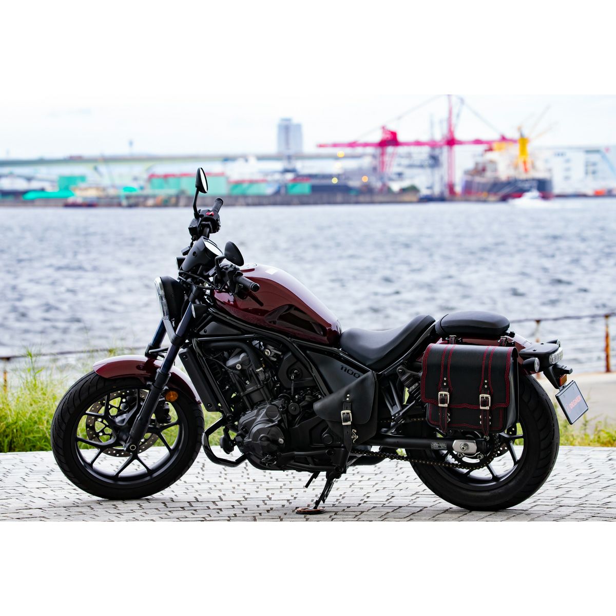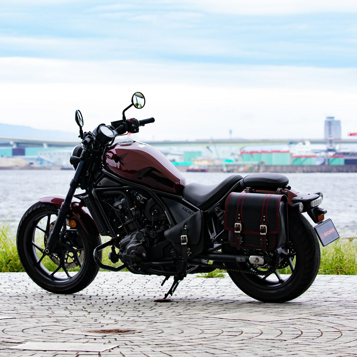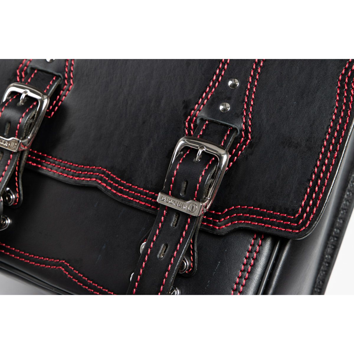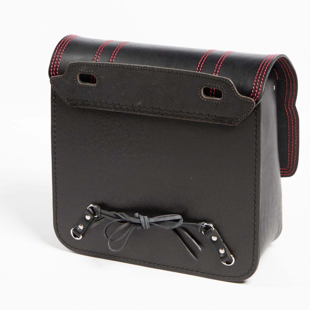 DEGNER ステッチデザイン レザーサドルバッグ 10L(ブラック/レッド)