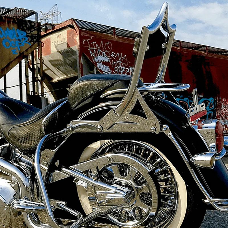 2000~2017 ソフテイル エルレイ デタッチャブルバックレストシーシーバー ホワイトダブルダイアモンドステッチ クローム CMC