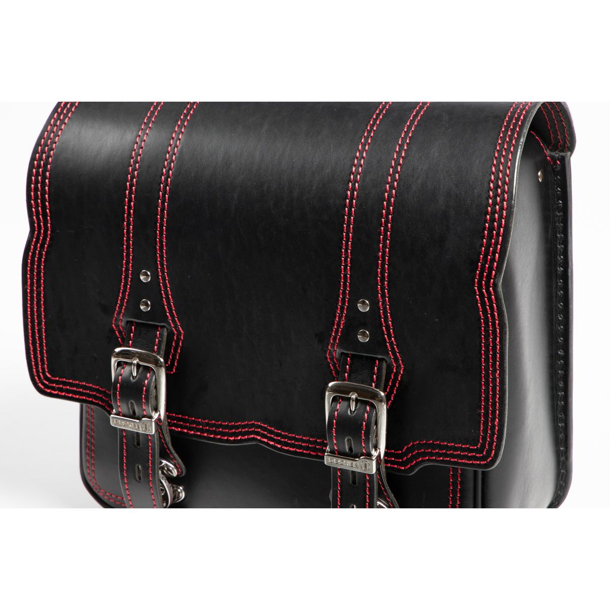 DEGNER ステッチデザイン レザーサドルバッグ 10L(ブラック/レッド)