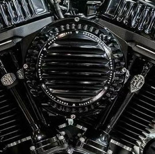 【セール】Rough Crafts フィンデザイン ラウンドエアクリーナー M8 ツーリング、ソフテイル用 グロスブラック