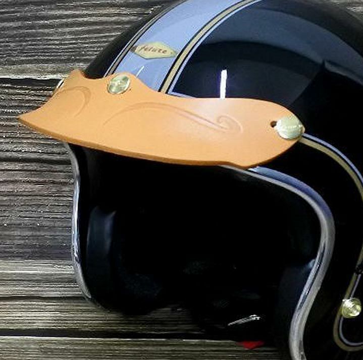 レザー製のヘルメットバイザー。 ●レトロ感たっぷりのレザーバイザー。 ●3つのスナップボタンが付いているヘルメットに装着可能です。 ●レザー製のバイザーはインパクトがあり、ヘルメットに高級感を与えます。 ●ヨーロッパ製の上質な牛革製。 ●厚さ約3.3ミリ ※レザーを曲げながらボタン位置を合わせて取り付けて下さい。
