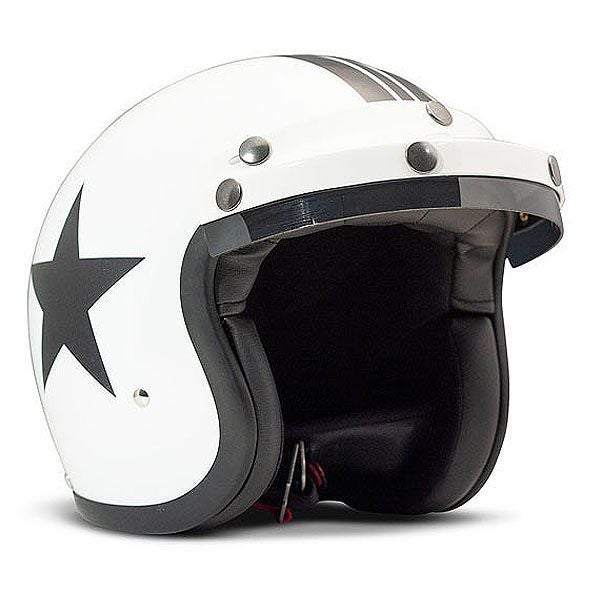 レーシングスタイルのヘルメットバイザー。 昔のレーシングヘルメットを再現したデザイン。 3点のスライドボタンで様々なヘルメットに取り付け可能。 非常に高い耐久性のある素材で製作されています。 ※ヘルメットは付属しません。