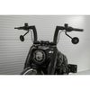 2インチ径の極太エイプハンドルバーです。 闘牛の角のような力強いルックス。圧倒的な存在感を醸しだします。 ハンドコントロール部は1インチ径。 XLスポーツスター、ダイナ、ソフテイル、ロードキング、Vロッド等の標準的なハンドコントロールを装着可能です。 ※油圧クラッチのノーマルマスターシリンダーは干渉のため不可。 ライザークランプ部分は1.25インチ径。 電子制御スロットル用切り欠き付。 ※ロードグライド、エレクトラグライド、ストリートグライド等のフェアリングモデルはハンドルと干渉しないよう、ライザー変更が必要。