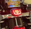 ハーレーの標準装着テールライトと取り換えることが出来る、LEDテールライトです。 ライセンスプレートがテールライトより下に付くタイプのテールライトの代わりに装着出来ます。 ラン、ブレーキ、ターンの機能付き。 ランニングライトは外側がレッドに発光、ブレーキライトは更に真中もレッドに発光します。ブレーキライトは最初ストロボ点滅した後フルに点灯、後続車に注意喚起します。 ターンシグナルに連動して中心部分がアンバーカラーでシーケンシャルに点滅します。 レンズは丈夫で飛散しないポリカーボネイト製。カラーはスモーク。 ※このテールライトのターンシグナルはターンシグナルの代用にはなりません。正しい位置に装着したターンシグナルは必要です。 ※配線接続加工が必要です。 仮組のみ 写真に写らないような細かい、薄い線傷があります。