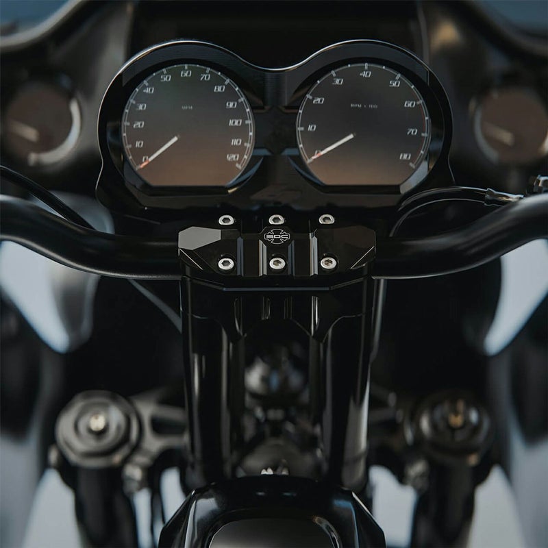 SDC(サンディエゴカスタムズ)とKRAUS(クラウス)のコラボレーションによって生まれたライザーです。 <特長> ●ライザーレッグ部分にカーボン製チューブを内蔵。ハンドル配線が外から隠れ、綺麗にまとまります ●モノブロックのアッパーおよびロワークランプ。6本のボルトでハンドルをしっかりと固定出来ます ●トップクランプにはSDCとKRAUSのコラボレーションロゴ入り ●別売のSDC Daggerプルバックプレート(SDC-UN-PB-42、SDC-SP-PB-42)を使用すれば2インチ高く、2インチ手前にセット出来ます ●別売のDovetailゲージマウント(UN-IN-04)を装着すれば、ライザー中央にクラウスのゲージマウントを取り付け出来ます ●高品質ビレットアルミニウム製 ●クランプ径1インチハンドル用 ※バットウィングフェアリングモデルはクラウスT-レックス プルバックプレートが別途必要です。 ※ロードグライドモデルはメーターナセルを取り外すか、別売のラプター プルバックプレートが必要です。