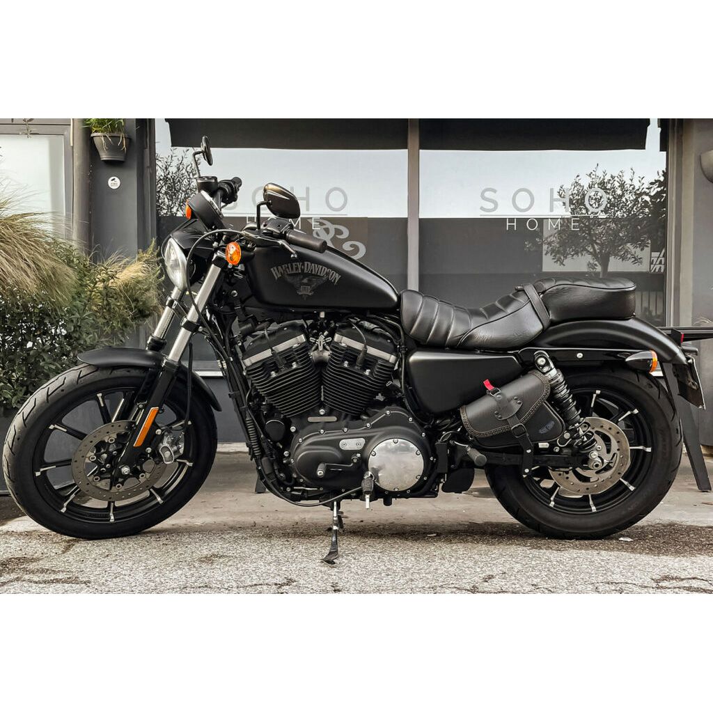スポーツスター用スイングアームバッグ MAMBO ブラック 左側 エンズクオイオ