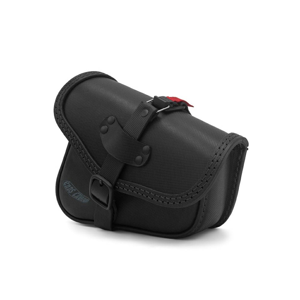 スポーツスター用スイングアームバッグ MAMBO ブラック/レッドステッチ 左側 エンズクオイオ
