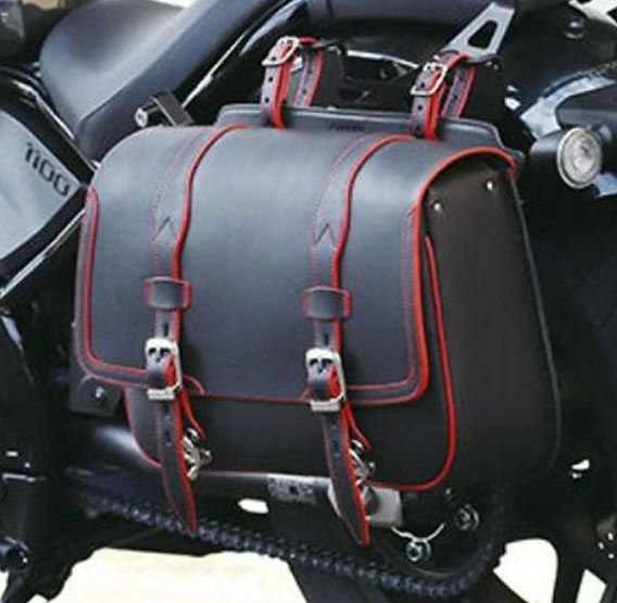 デグナー SB-81 レザーサドルバッグ 18L (ブラック x レッド)
