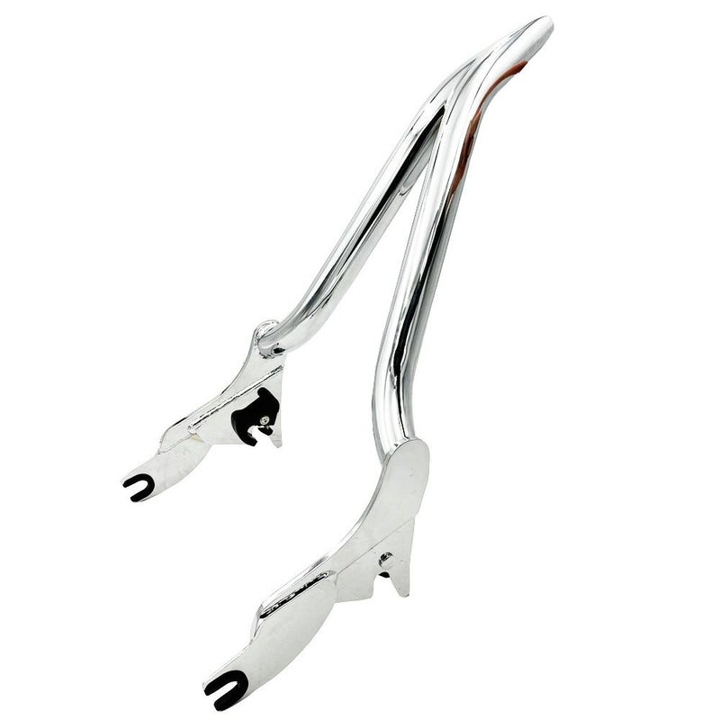 アイオワ州スーシティ(Sioux City)のカスタムショップ、スーサイドチョッパーズ(Siouxicide Choppers)のツーリング用デタッチャブルシーシーバーです。 高さは16インチ(約41cm)。 先端の尖った過激なスタイルですが、後ろに15度の傾斜がついており、ライダーとパッセンジャーの間に余裕のある乗車姿勢を取れます。 更に先端部分の4インチ(約10cm)は30度の傾斜が付いており、見た目のインパクトと、パッセンジャーの安全性にも配慮されたデザインです。 純正のドッキングポイントに装着出来ます。 バックレストパッドは付属しません。(パッド装着不可) パイプ径は極太の1.5インチ。 クローム。 ※ツアーパックとの併用不可。 ※小傷あり(写真2枚目) 在庫処分品。