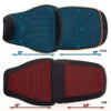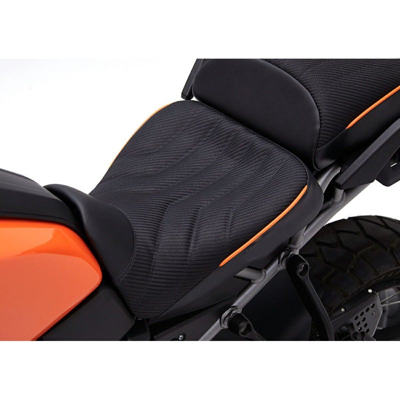 ハーレー初のアドベンチャーツーリング、パンアメリカ用のフロント・ローシートです。 アドベンチャーバイクは車高が高いため、足つき性はこれまでのハーレーよりも悪くなりがちです。 また、ノーマルシートは長時間の乗車でお尻が痛くなる場合があります。 コルビンがいち早くこれらの問題に対応したのがこのシートです。 ノーマルシートよりも座面を広く取り、コルビンのコンフォートセル・シートフォームおよびFiberTech製シートパンとの相乗効果で体重を分散し、長時間のライディングも快適に過せます。 ノーマルのローポジションよりも1インチ(約2.5cm)低いシート高で、前側は滑らかに絞り込まれ、太腿に干渉しないシェイプのため、足つき性も改善します。 ※純正リーチソロシートよりも0.5インチ(約1.2cm)低くなります。 ノーマルリアシートとの併用可能。 ノーマルシートと同様にキーロック機構付きリアシートによって固定されます。 ※シートポジション(ハイ・ロー)調整は出来ません。 ※写真のリアシートは別売です。 在庫処分品