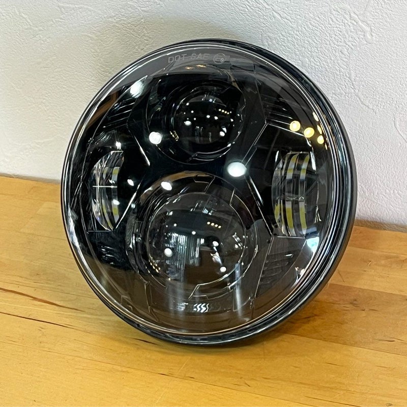 5-3/4インチ(純正と同サイズ)のLEDヘッドライト。 Eマーク付き。 ロービームで上側のプロジェクターLEDとサイドLEDが点灯し、ハイビームでは4個全てのLEDが点灯します。 消費電力も大きく下がります。 ハロゲンライトに比べ約20倍の寿命です。 IP67準拠で防水性の高いヘッドライトです。 LEDヘッドライトは純正も含めて内部が雨天時に曇ってしまう物があります。内部の空気中の水分が外気温度と湿度の影響で一時的に曇るのですが、この商品は裏側のカバーで湿度を抜く(晴天で湿度の低い日に作業します)事で曇りを解消できます。 明るさ: ハイビーム:3500ルーメン ロービーム:2000ルーメン LEDヘッドライトのみです。 H4コネクタでそのまま交換できます。 ※ボトムマウントのヘッドライト場合は、下側の固定金具がシェル内部に飛び出していて、そこが干渉する可能性があります(車種によります。事前にシェル内をご確認下さい)。 干渉する場合は奥行きのあるヘッドライト(913994、901536)のハウジングを使用できます。 ブレイクアウト等は干渉せずボルトオンで装着可能です。 展示処分品 赤枠箇所に薄い傷があります。